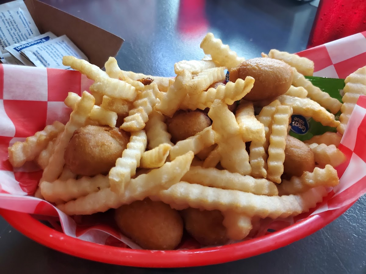 Great service and atmosphere, food was pretty good. One of our burgers was a little pink so the cook was kind enough to cook a new one. The cook also gave the kids some free money for the ducky claw machine. I would recommend this place.